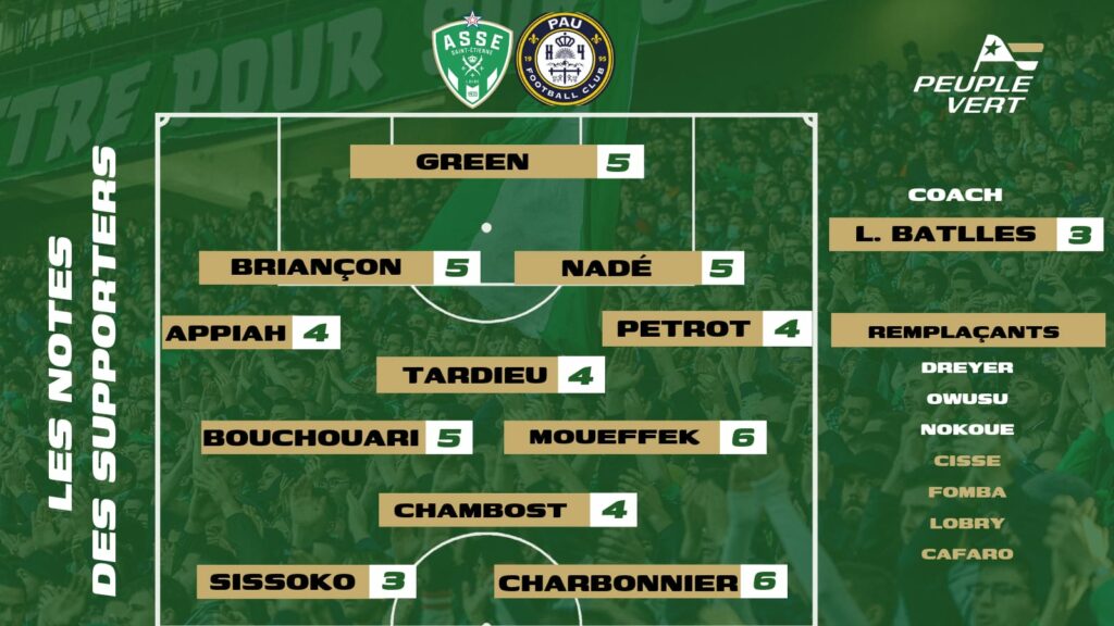 Comme chaque semaine à l'issue du match, les supporters des Verts sont sollicités via les réseaux sociaux pour donner leurs notes pour la rencontre. Chaque joueur est noté individuellement. Voici les résultats du match contre Pau.