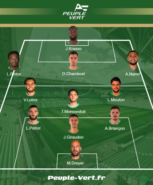 Pour pallier cette absence, le coach stéphanois a fait le choix d'incorporer un milieu supplémentaire Benjamine Bouchouari ou Louis Mouton ont ainsi pu enchainer au d'un milieu de terrain plus dense.