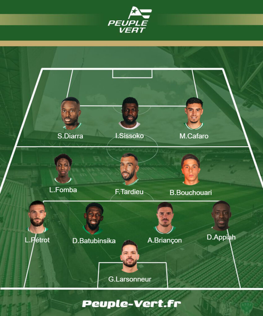 Avec Gautier Larsonneur comme gardien du temple, Briançon et Batubinsika devraient enchaîner comme charnière centrale. Le second a assurément livré son meilleur match sous le maillot vert. Il monte en puissance et c'est évidemment encourageant pour la suite. À droite, il a probablement livré également son plus beau visage contre Caen, Dennis Appiah sera à nouveau aligné. Enfin, Léo Pétrot sera titularisé au poste d'arrière gauche. Il offre davantage de garanties défensives que le marocain Mahmoud Bentayg.