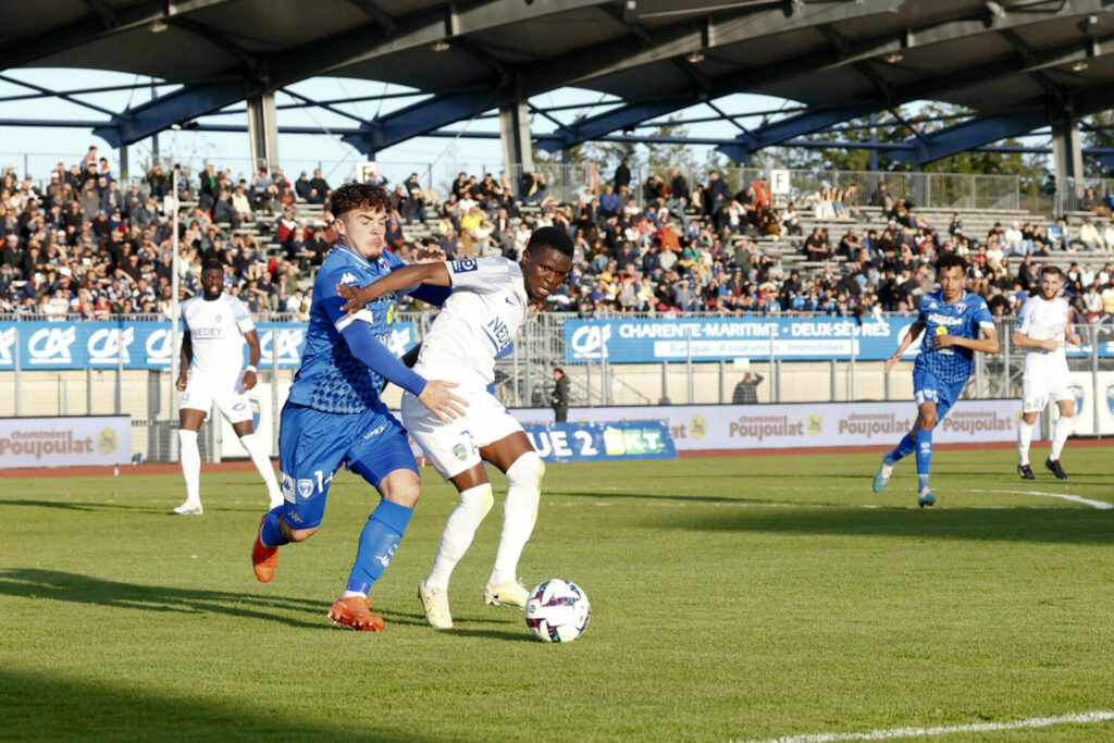 14 Dylan DURIVAUX (cnfc) - 70 Moussa DOUMBIA (fcsm) during the Ligue 2 BKT match between Niort and Sochaux at Stade Rene Gaillard on April 8, 2023 in Niort, France. (Photo by Gwendoline Le Goff/FEP/Icon Sport)