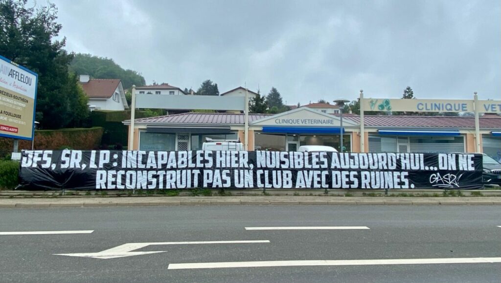 Alors que l’AS Saint-Étienne joue sa survie sur le terrain, la colère gronde en tribunes. Ce lundi, les Green Angels 1992 ont installé une banderole devant le centre d’entraînement de L'Étrat. Le message est clair, incisif et sans équivoque : « JFS, SR, LP : Incapables hier, nuisibles aujourd’hui… On ne reconstruit pas un club avec des ruines. »