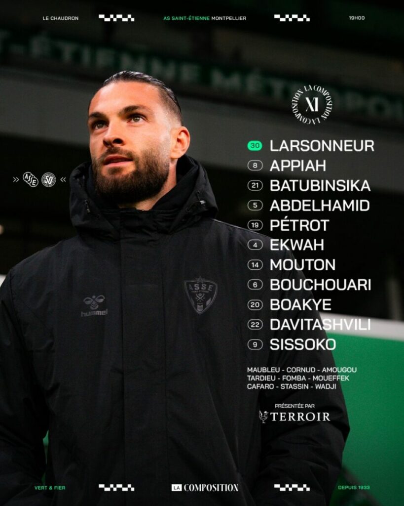L'ASSE a décroché sa deuxième victoire de la saison face à Strasbourg (2-0) mais a perdu le derby dans la foulée (1-0). Après une trêve internationale, une série de quatre matchs arrive et viendra donner la tendance de cette première partie de saison. Cette série commence aujourd'hui à 19h à Geoffroy Guichard contre Montpellier. Voici la composition d'Olivier Dall'Oglio pour affronter Montpellier pour le compte de la 12ᵉ journée de ligue 1.