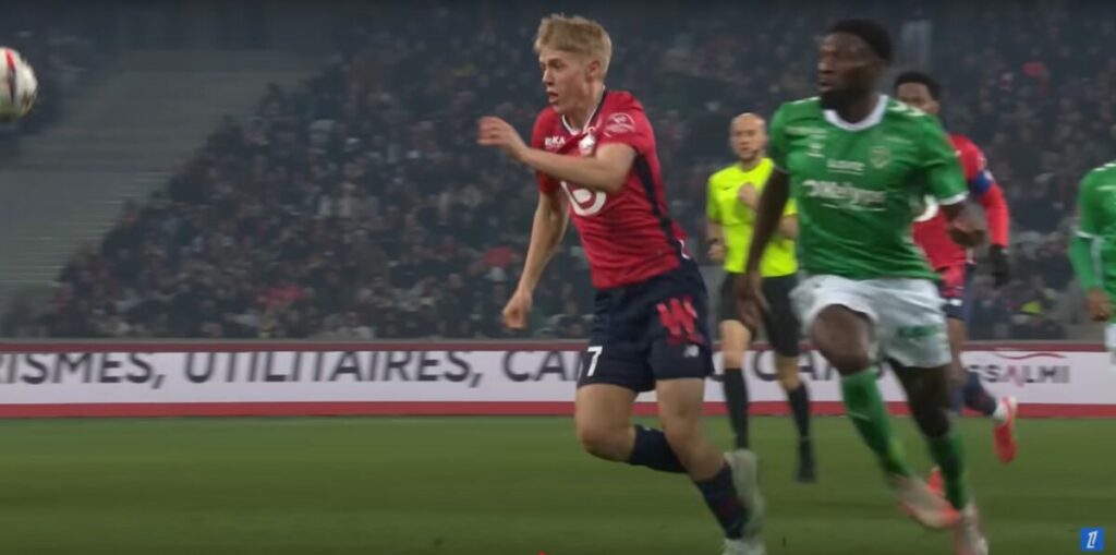 Face à Lille, Dylan Batubinsika est expulsé alors qu’aucune image ne prouve un contact réel avec Haraldsson. Résultat : l’ASSE s’écroule en seconde période (4-1).