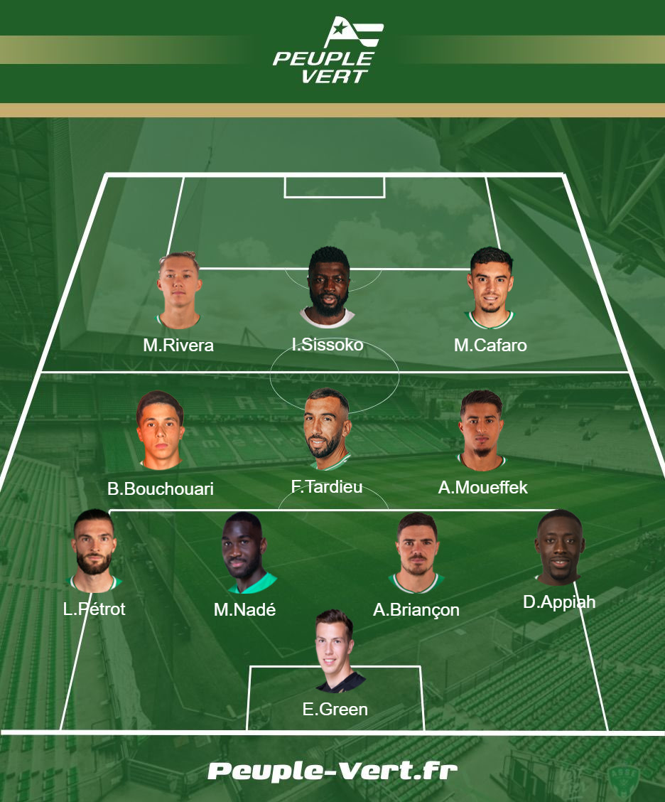 Après son meilleur match sous la tunique verte à Laval, Florian Tardieu sera de nouveau titularisé au poste de sentinelle. Pour améliorer et accélérer notre jeu, il devra prendre exemple sur son match à Laval. Ainsi, il ne devra pas venir se coller à sa défense centrale en phase de possession. Les défenseurs centraux ont les qualités pour casser des lignes avec leur qualité de passe. Tardieu devra donc se positionner dans les intervalles pour proposer des solutions plus haut sur le terrain.