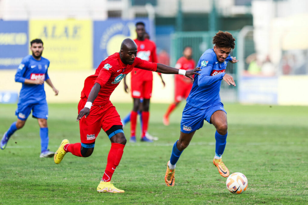 Abdoulaye DIALLO of Toulon and Terry EL ANA of Aubagne during the French Cup match between Toulon and Aubagne on October 29, 2022 in Toulon, France. (Photo by Johnny Fidelin/Icon Sport)