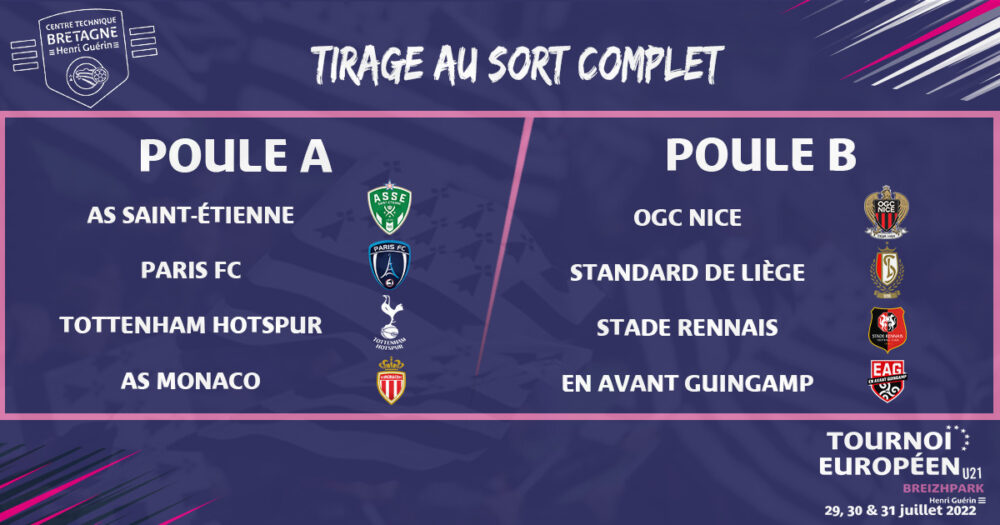 Les matches de poule auront lieu les 29 et 30 juillet, la phase finale se déroulera le 31 juillet. En effet, dans ce tournoi, les jeunes pousses stephanois vont se confronter à des équipes européennes. Par le biais du célèbre tournoi de Ploufragan, ils vont se mesurer à des équipes du gratin européen. Le tournoi rassemble 8 équipes dont Tottenham, Standard de Liège, Paris FC, Nice, Guingamp, Monaco et Rennes. Le tirage au sort à eu lieu et nous offre deux poules de 4 équipes. Les verts seront dans la poule A avec le Paris FC, Tottenham et Monaco. Des oppositions qui promettent d'affronter des joueurs de bon niveau. Un épisode forcément positif pour les coéquipiers d'Antoine Gauthier.