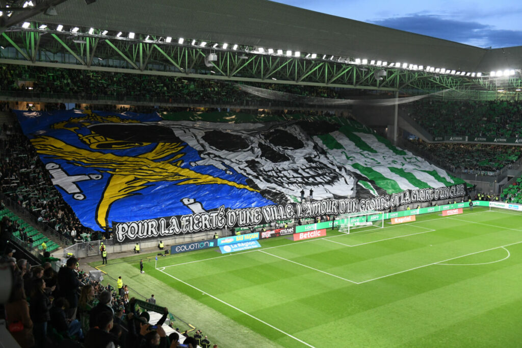 Fans of AS Saint-Etienne during the Ligue 1 MCDonald's match between Saint Etienne and Lyon on April 20, 2025 at Stade Geoffroy-Guichard in Saint-Etienne, France. (Photo by Philippe Lecoeur/FEP/Icon Sport) - Photo by Icon Sport