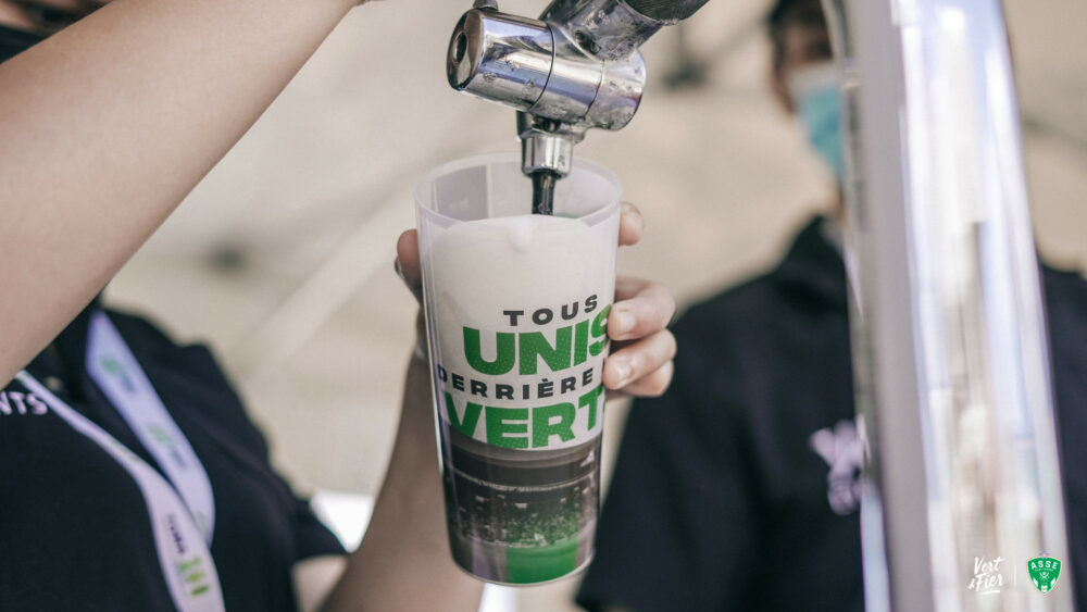 - Pour les bières : des gobelets ASSE réutilisables et consignés (1€ au lieu de 2€ les saisons précédentes)