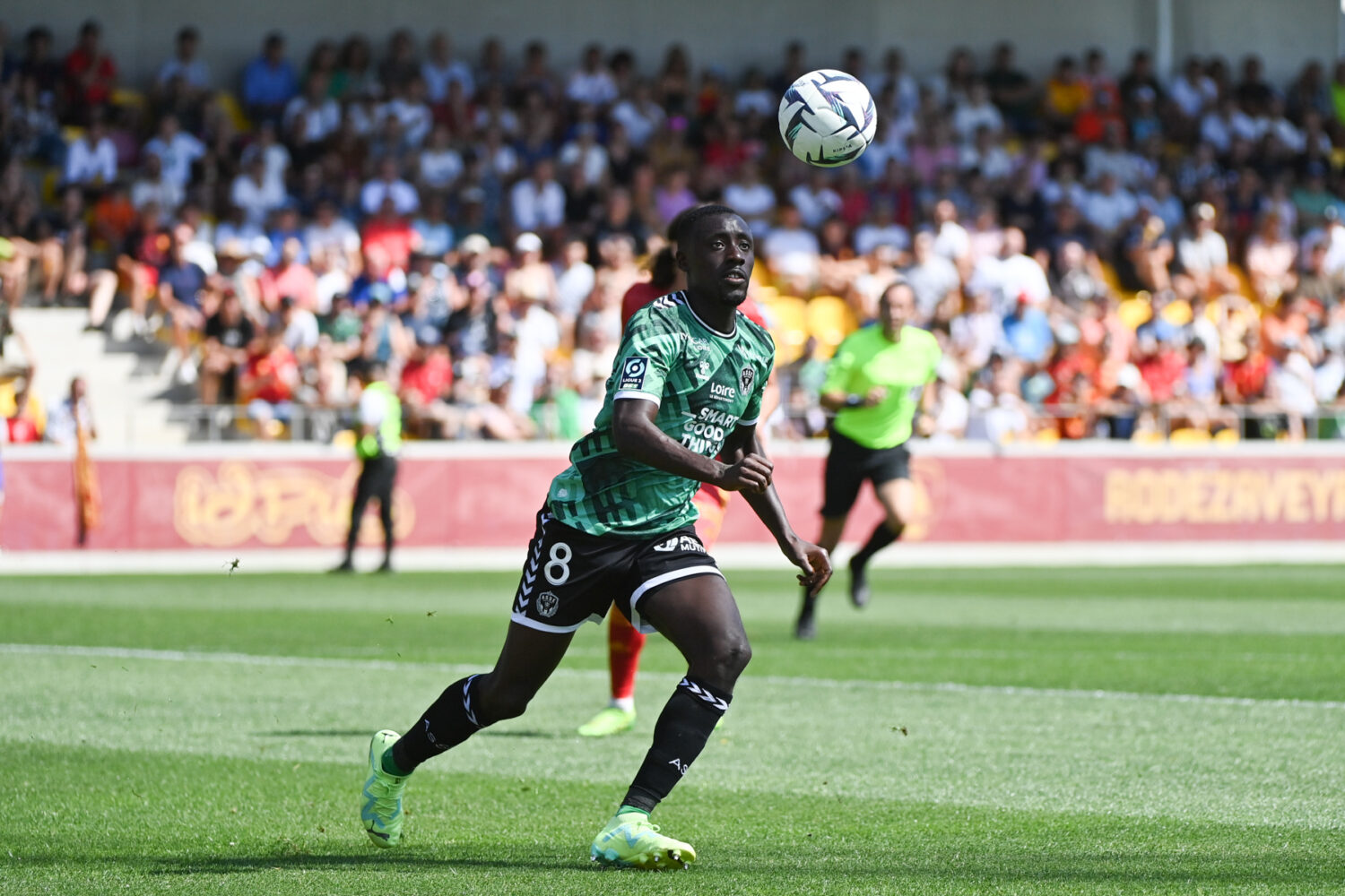 Dennis APPIAH (asse) during the Ligue 2 BKT match between Rodez and Saint Etienne at Paul Lignon Stadium on August 12, 2023 in Rodez, France. (Photo by Sylvain Dionisio/FEP/Icon Sport)