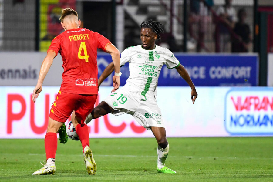 19 Yvan NEYOU NOUPA (asse) during the Ligue 2 BKT match between Quevilly Rouen and Saint-Etienne at Stade Robert Diochon on August 15, 2022 in Rouen, France. (Photo by Anthony Bibard/FEP/Icon Sport) - Photo by Icon sport