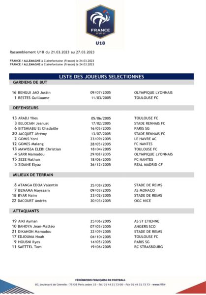 Le regroupement sera du 21 au 27 mars. Il y jouera 2 rencontres amicales à Clairefontaine contre l'Allemagne le 25 mars et le 27. Bonne chance à notre ailier !
