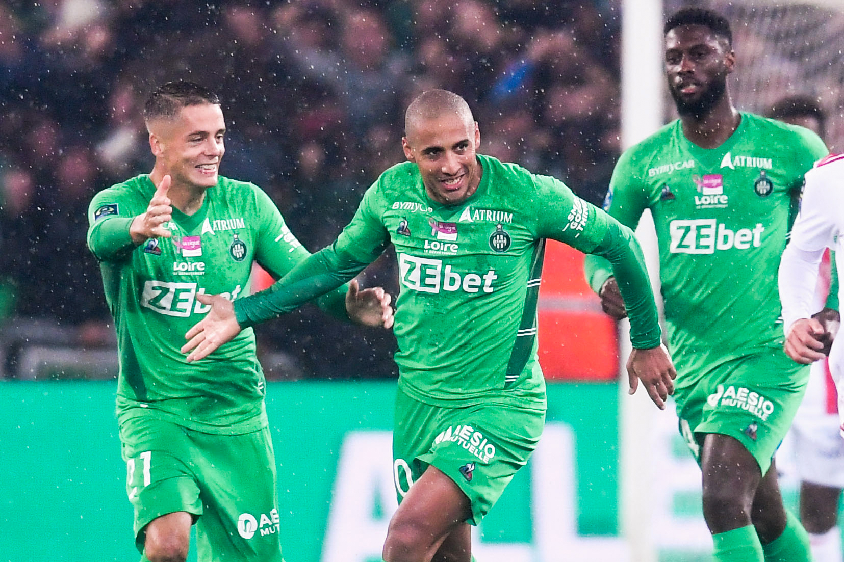 21 Romain HAMOUMA (asse) - 10 Wahbi KHAZRI (asse) during the Ligue 1 Uber Eats match between Saint Etienne and Lyon at Stade Geoffroy-Guichard on October 3, 2021 in Saint-Etienne, France. (Photo by Philippe Lecoeur/FEP/Icon Sport) - Romain HAMOUMA - Wahbi KHAZRI - Jean-Philippe KRASSO - Stade Geoffroy-Guichard - Saint Etienne (France)