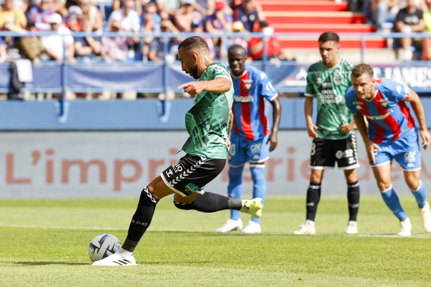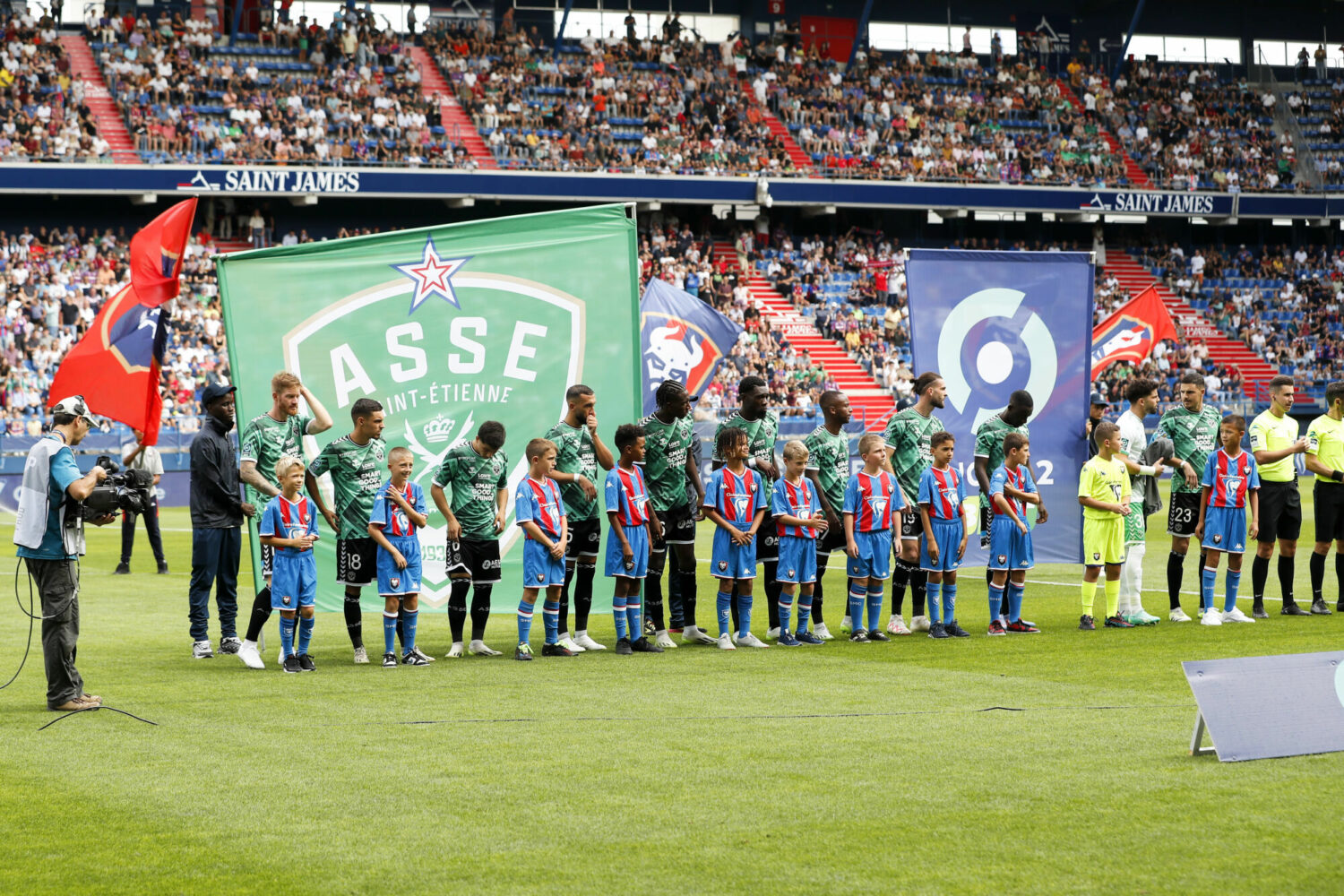 Equipe de football de Saint-Etienne ASSE during the Ligue 2 BKT match between Stade Malherbe Caen and Association Sportive de Saint Etienne at Stade Michel D'Ornano on September 16, 2023 in Caen, France. (Photo by Loic Baratoux/FEP/Icon Sport)