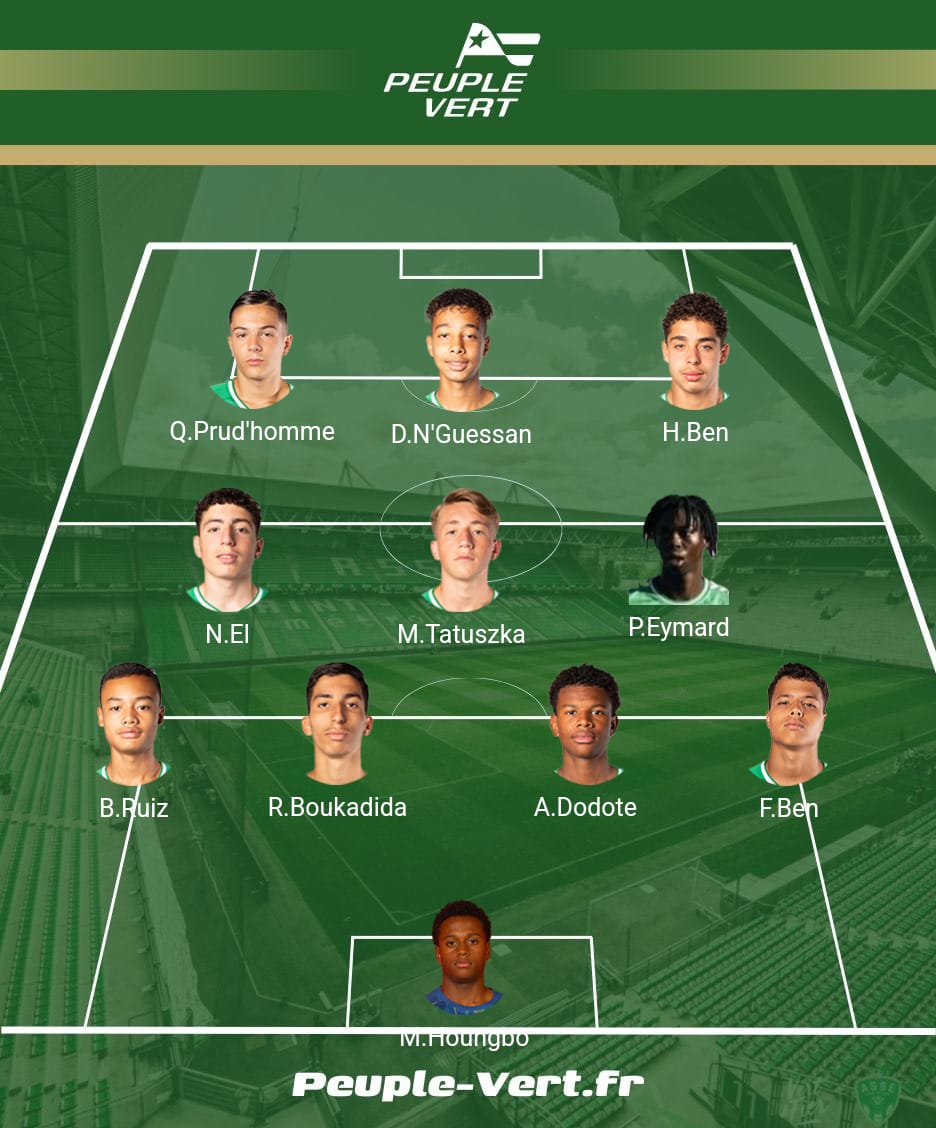 Les U17 installent leur jeu. La premiÚre offensive est stéphanoise. El Jamali récupÚre un bon ballon trouve N'guessan qui envoie Ben Tiba en profondeur qui frappe. Sa tentative rase le poteau...