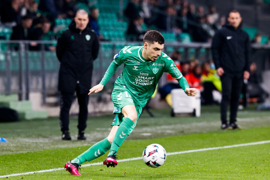 18 Mathieu CAFARO (asse) during the Ligue 2 BKT match between Saint Etienne and Amiens at Stade Geoffroy-Guichard on March 11, 2023 in Saint-Etienne, France. (Photo by Loic Baratoux/FEP/Icon Sport)