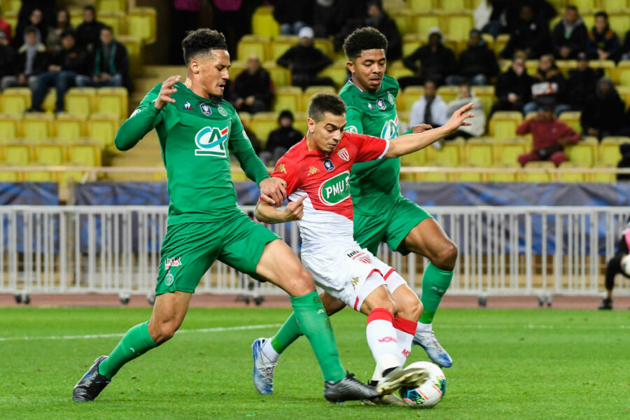 Wissam BEN YEDDER of Monaco and Wesley FOFANA and WILLIAM SALIBA of Saint Etienne during the French Cup soccer match between Monaco and Saint-Etienne at Stade Louis II on January 28, 2020 in Monaco, Monaco. (Photo by Pascal Della Zuana/Icon Sport)