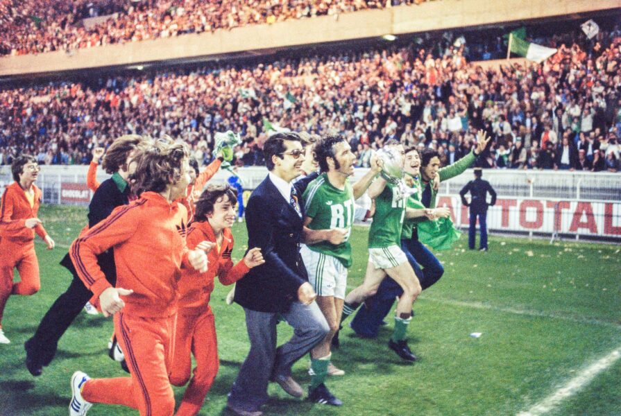 Herve Revelli of Saint Etienne left the trophy after the French Cup Final match between AS Saint Etienne and Stade de Reims, at Parc des Princes, Paris, France on June 18th 1977 ( Photo by Michel Piquemal / Onze / Icon Sport )