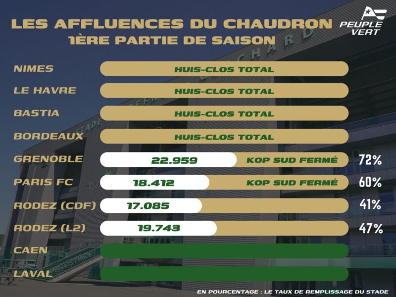Depuis le début de saison, Geoffroy-Guichard a donc accueilli à 4 reprises les supporters Verts face à : Grenoble, Paris FC et 2 fois Rodez (Coupe de France et L2).