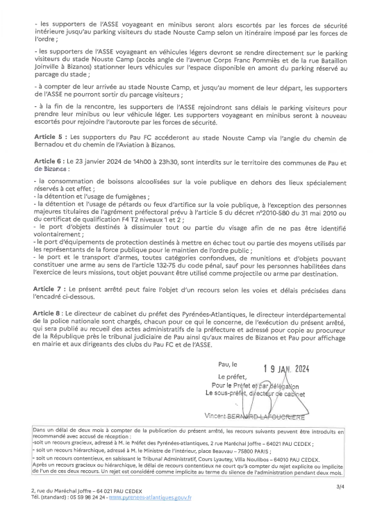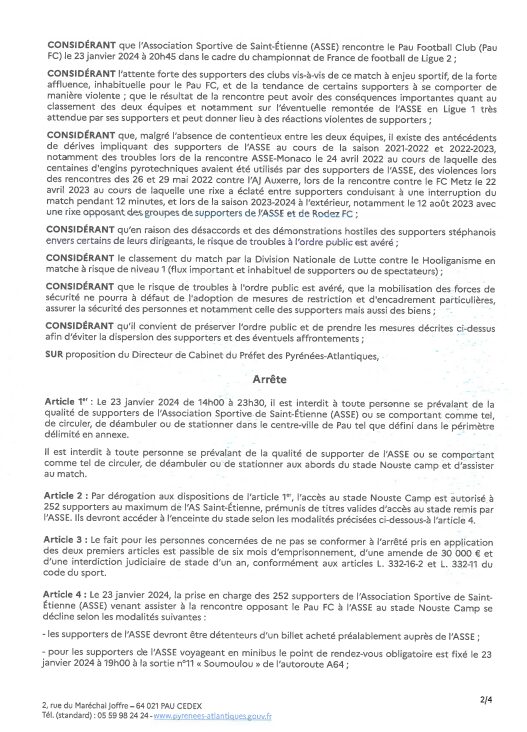 L'ASSE s'apprête à effectuer son premier déplacement de l'année 2024 contre le Pau FC. Pour cette occasion, le parcage du Nouste Camp sera plein. Cependant, le déplacement est une nouvelle fois encadré par un arrêté préfectoral !