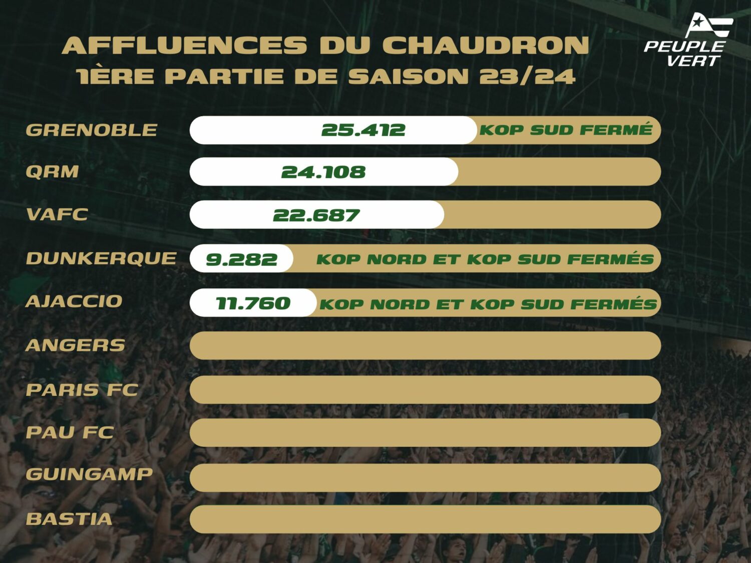 Il est toutefois nécessaire de pondérer ce record en soulignant, que l'affluence affichée en ouverture de championnat face à Grenoble s'était réalisé sans le Kop Sud, fermé pour l'occasion.