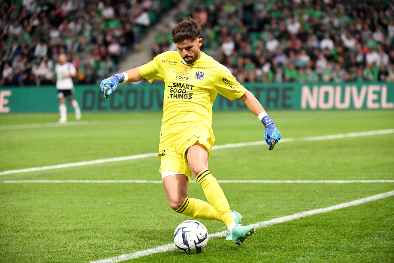 30 Gautier LARSONNEUR (asse) during the Ligue 2 BKT match between Association Sportive de Saint-Etienne and Athletic Club Ajaccien at Stade Geoffroy-Guichard on October 7, 2023 in Saint-Etienne, France. (Photo by Anthony Bibard/FEP/Icon Sport)