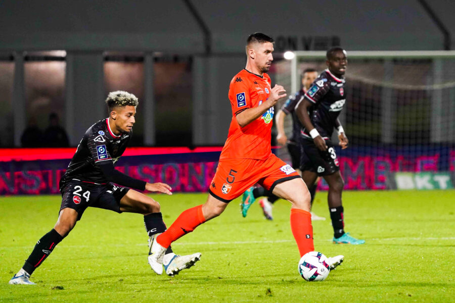 24 Allan LINGUET (vafc) - 05 Julien MAGGIOTTI (slmfc) during the Ligue 2 BKT match between Laval and Valenciennes at Stade Francis Le Basser on November 12, 2022 in Laval, France. (Photo by Eddy Lemaistre/FEP/Icon Sport) - Photo by Icon sport