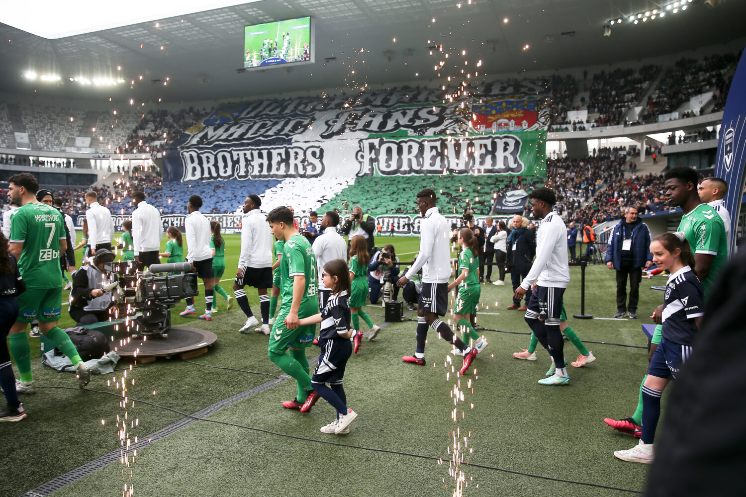 À coté de l'aspect sportif, nous sommes obligés de penser aux tribunes. La saison passée, la venue des bordelais à Geoffroy-Guichard avait eu lieu à huis-clos total. Les stéphanois, avaient en revanche pu, eux, se déplacer au Matmut Atlantique lors du match retour. Et l'ambiance fût exceptionnelle. Les Magic Fans et les Ultramarines, groupes amis depuis 30 ans, avaient réalisés une animation commune avec de gigantesques tifos.