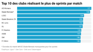 Il s'agit d'une statistique particulières en vogue ces derniers mois. Etudier les courses des joueurs donnent une indication précieuse sur l'activité des équipes. La Ligue de Football Professionnel propose ce jour une étude sur cette donnée qui reste relativement difficile à trouver.