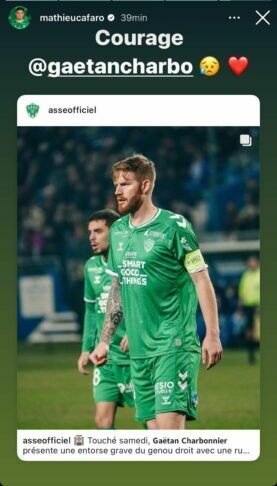 Le club apporte tout son soutien à Gaëtan Charbonnier et lui souhaite un prompt rétablissement."