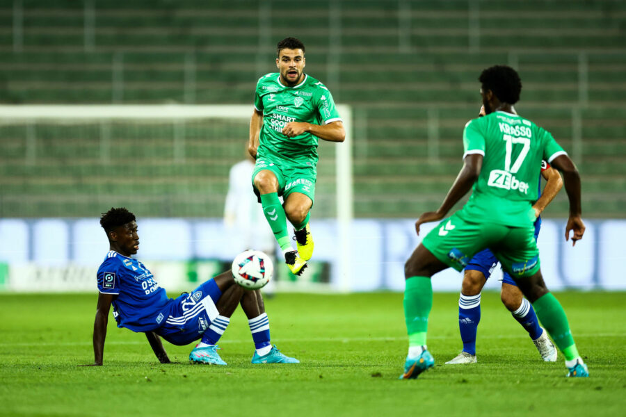 04 Malcom BOKELE MPUTU (fcgb) - 15 Lenny PINTOR (asse) during the Ligue 2 BKT match between Saint Etienne and Bordeaux at Stade Geoffroy-Guichard on September 10, 2022 in Saint-Etienne, France. (Photo by Dave Winter/FEP/Icon Sport) - Photo by Icon sport