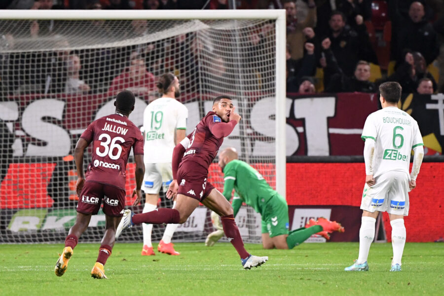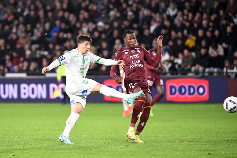 27 Danley JEAN JACQUES (fcm) - 06 Benjamin BOUCHOUARI (asse) during the Ligue 2 BKT match between FC Metz and AS Saint-Etienne at Stade Saint-Symphorien on November 7, 2022 in Metz, France. (Photo by Anthony Bibard/FEP/Icon Sport) - Photo by Icon sport