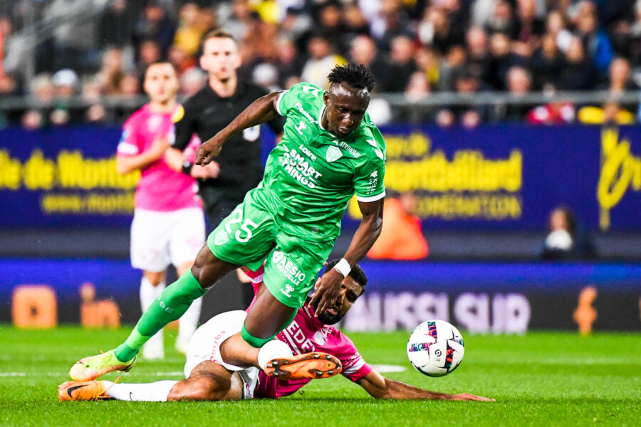 25 Ibrahima WADJI (asse) during the Ligue 2 BKT match between Sochaux and Saint Etienne at Stade Auguste Bonal on October 10, 2022 in Montbeliard, France. (Photo by Anthony Bibard/FEP/Icon Sport) - Photo by Icon sport