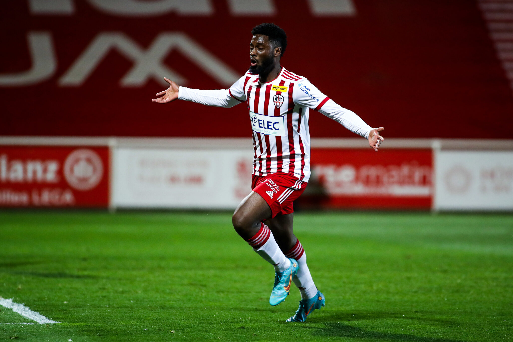 Jean Philippe KRASSO during the Ligue 2 BKT match between Ajaccio and Rodez at Stade Francois Coty on February 26, 2022 in Ajaccio, France. (Photo by Michel Luccioni/Icon Sport)