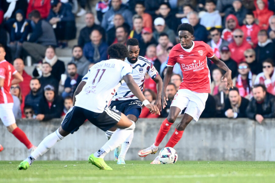 12 Lamine FOMBA (no) during the Ligue 2 BKT match between Nimes Olympique and Girondins de Bordeaux at Stade des Costieres on November 5, 2022 in Nimes, France. (Photo by Alexandre Dimou/FEP/Icon Sport) - Photo by Icon sport