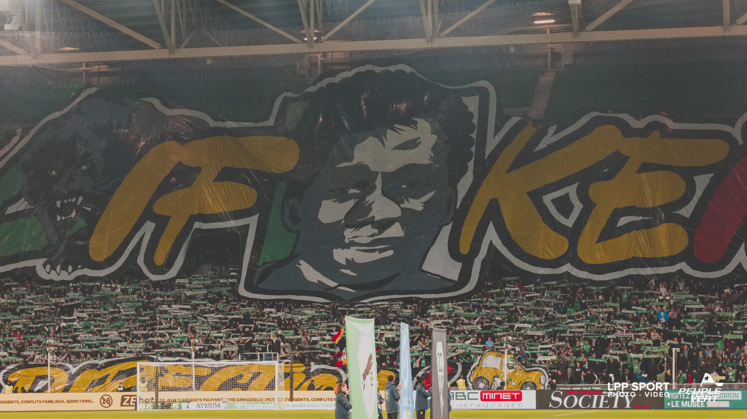 Hommage du Kop Sud et des Green Angels à Salif Keita avant ASSE - Angers (30 octobre 2023) à Geoffroy-Guichard.