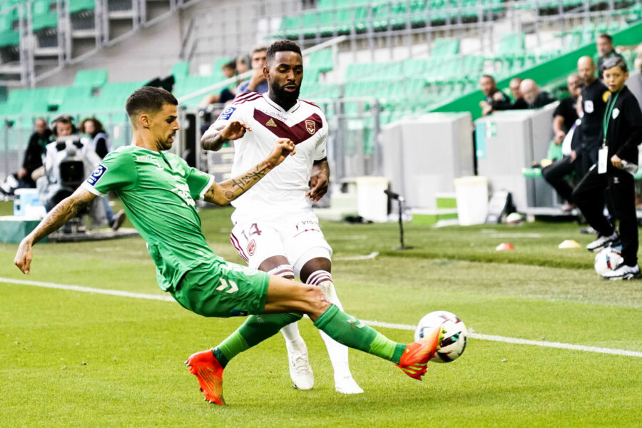 05 Jimmy GIRAUDON (asse) - 14 Vital NSIMBA (fcgb) during the Ligue 2 BKT match between Saint Etienne and Bordeaux at Stade Geoffroy-Guichard on September 10, 2022 in Saint-Etienne, France. (Photo by Dave Winter/FEP/Icon Sport) - Photo by Icon sport