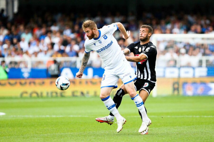 19 Gaetan CHARBONNIER (aja) - 05 Miha BLAZIC (sco) during the Ligue 1 Uber Eats match between Auxerre and Angers at Abbe-Deschamp Stadium on August 14, 2022 in Auxerre, France. (Photo by Maxime Le Pihif/FEP/Icon Sport) - Photo by Icon sport