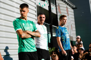 Anthony BRIANCON and Etienne GREEN of Saint-Etienne during AS Saint-Etienne presentation on July 1, 2022 in Saint-Etienne, France. (Photo by Romain Biard/Icon Sport)