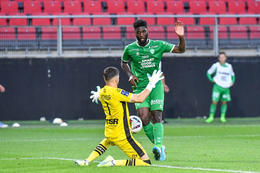 02 Eric VANDENABEELE (raf) - 17 Jean-Philippe KRASSO (asse) during the Ligue 2 BKT match between Saint-Etienne and Rodez at Stade Geoffroy-Guichard on November 12, 2022 in Saint-Etienne, France. (Photo by Alexandre Dimou/FEP/Icon Sport) - Photo by Icon sportJean-Philippe Krasso fait le point sur sa situation