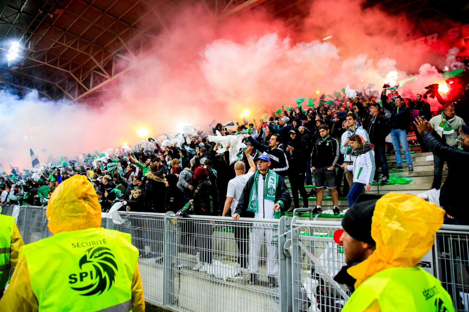 Fans of Saint Etienne during the Ligue 1 match between AS Saint-Etienne and Olympique Lyon at Stade Geoffroy-Guichard on October 6, 2019 in Saint-Etienne, France. (Photo by Romain Biard/Icon Sport)
