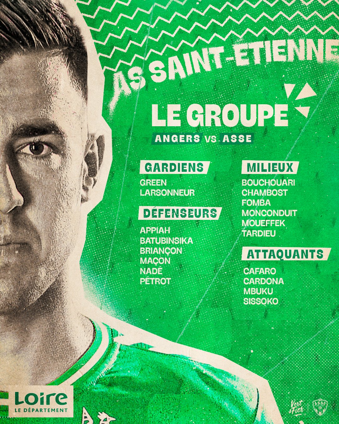 Les Verts sont parvenus à faire renaître l'espoir ce lundi. En partie seulement. Le Peuple Vert attend confirmation. Une confirmation qui devra avoir lieu à Angers ce samedi à 15 heures. Voici les 18 joueurs retenus par Olivier Dall'Oglio pour ce choc de Ligue 2 BKT.