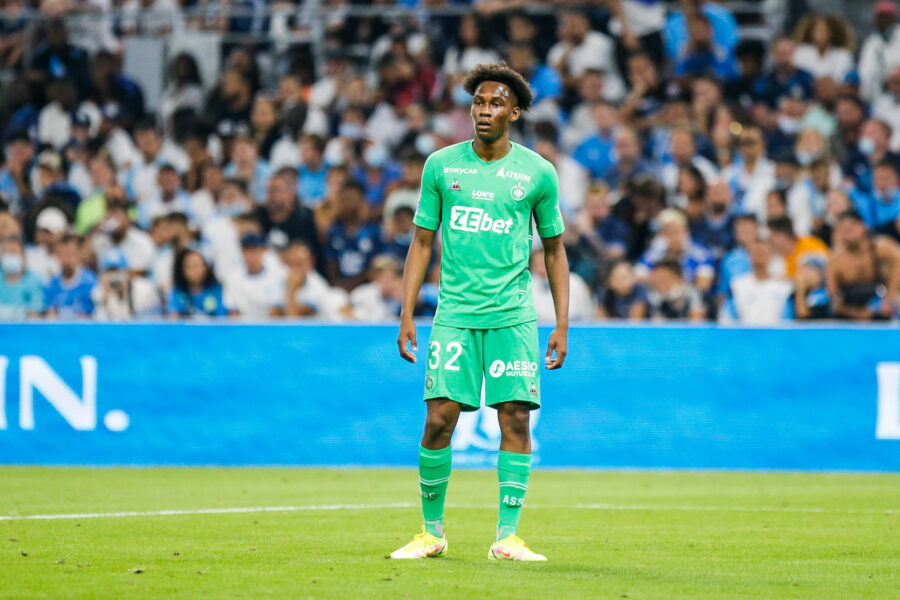 Mathys SABAN of Saint Etienne during the Ligue 1 Uber Eats match between Marseille and Saint Etienne at Orange Velodrome on August 28, 2021 in Marseille, France. (Photo by Johnny Fidelin/Icon Sport)