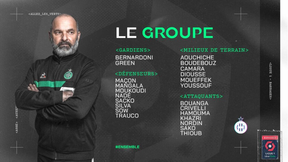 Au milieu, Moueffek fait son apparition en lieu et place de Lucas Gourna-Douath. Enfin, en attaque, aucun changement par rapport au groupe appelé pour la manche aller à Auxerre.