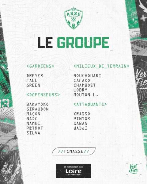 Match à nouveau décisif pour Laurent Batlles et ses hommes demain soir. Les Verts se déplacent au Stade Symphorien du FC Metz pour une rencontre où le perdant sera en bien mauvaise posture. Le groupe de l’ASSE a été publié.