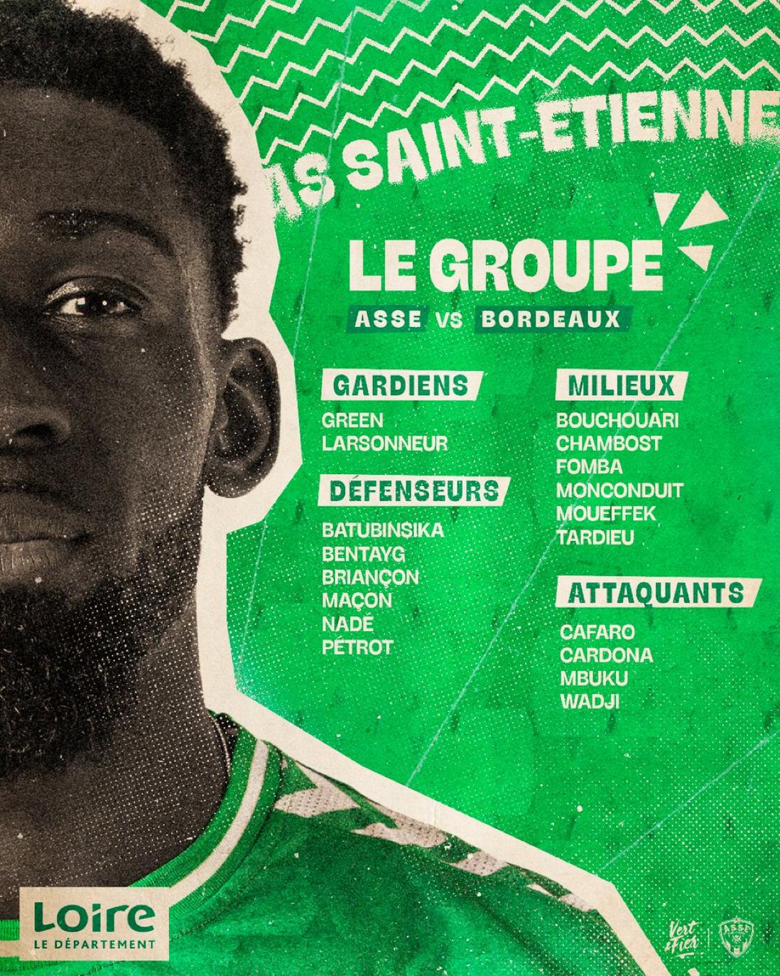 L'AS Saint-Etienne reçoit les Girondins de Bordeaux ce samedi soir. Olivier Dall'Oglio (ASSE) vient de communiquer son groupe pour le choc de la Journée 33 de Ligue 2.