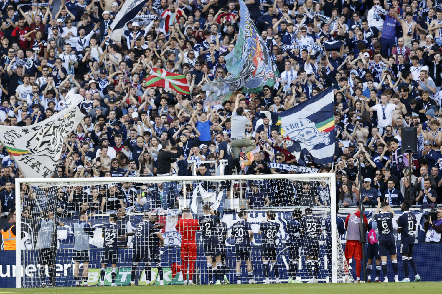 Equipe de football de Bordeaux (fcgb) during the Ligue 2 BKT match between Bordeaux and Bastia at Stade Matmut Atlantique on April 8, 2023 in Bordeaux, France. (Photo by Loic Baratoux/FEP/Icon Sport)