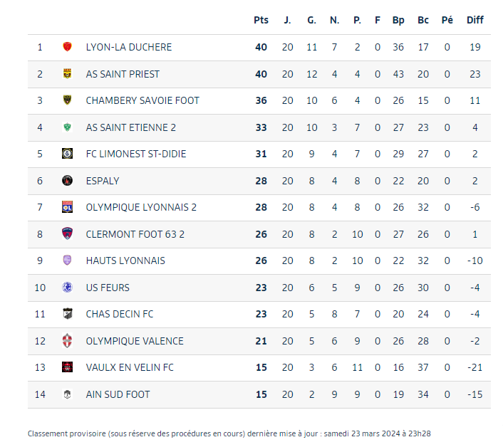 Solidement installée dans le top 5, la réserve a réalisé l'objectif premier, à savoir se maintenir en national 3. Au regard des grandes difficultés que les clubs professionnels subissent à maintenir leur réserve, c'est une performance de l'avoir fait à six journées de la fin. 4e, les Verts tenteront d'aller chercher une place sur le podium !