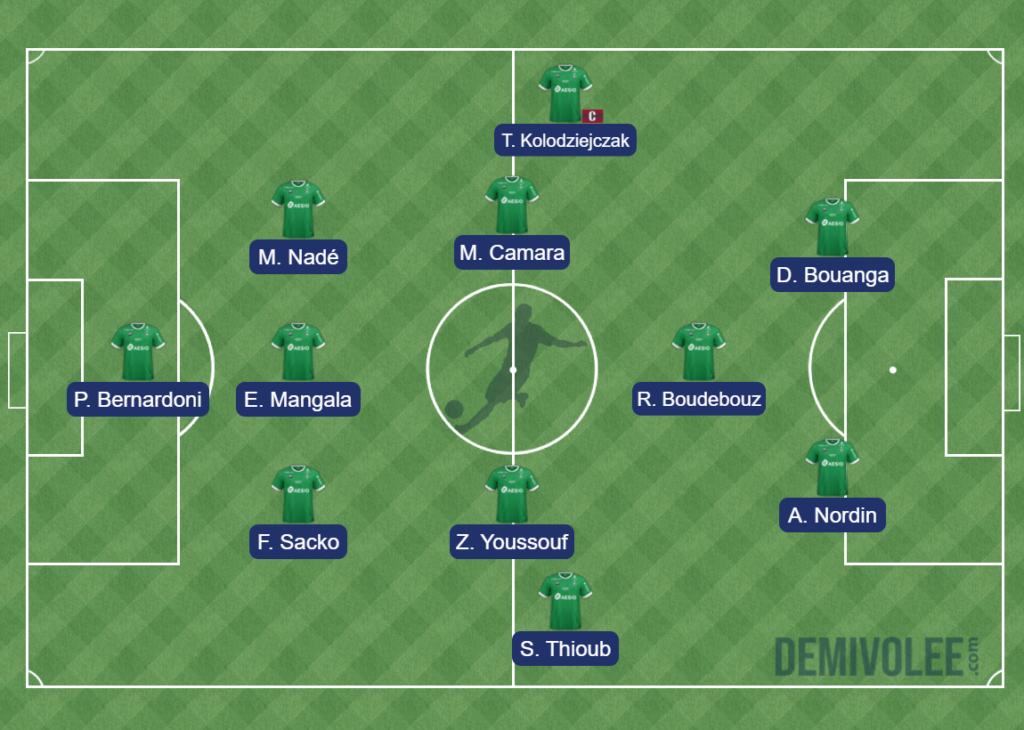Devant, c'est Denis Bouanga qui sera titulaire. Le gabonais est en forme ses derniers matchs et aura à coeur de continuer sur sa lancée. Comme face au PSG Arnaud Nordin devrait l'accompagner avec en soutien Ryad Boudebouz pour animer le tout. Wahbi Khazri jouera le rôle de supersub pour son retour !