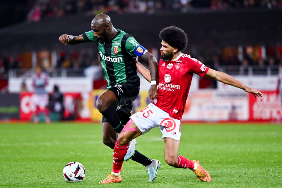 Seko FOFANA of Rc Lens and Mahdi CAMARA of Brest during the Ligue 1 Uber Eats match between Rennes and Lille at Roazhon Park on February 4, 2023 in Rennes, France. (Photo by Anthony Dibon/Icon Sport)