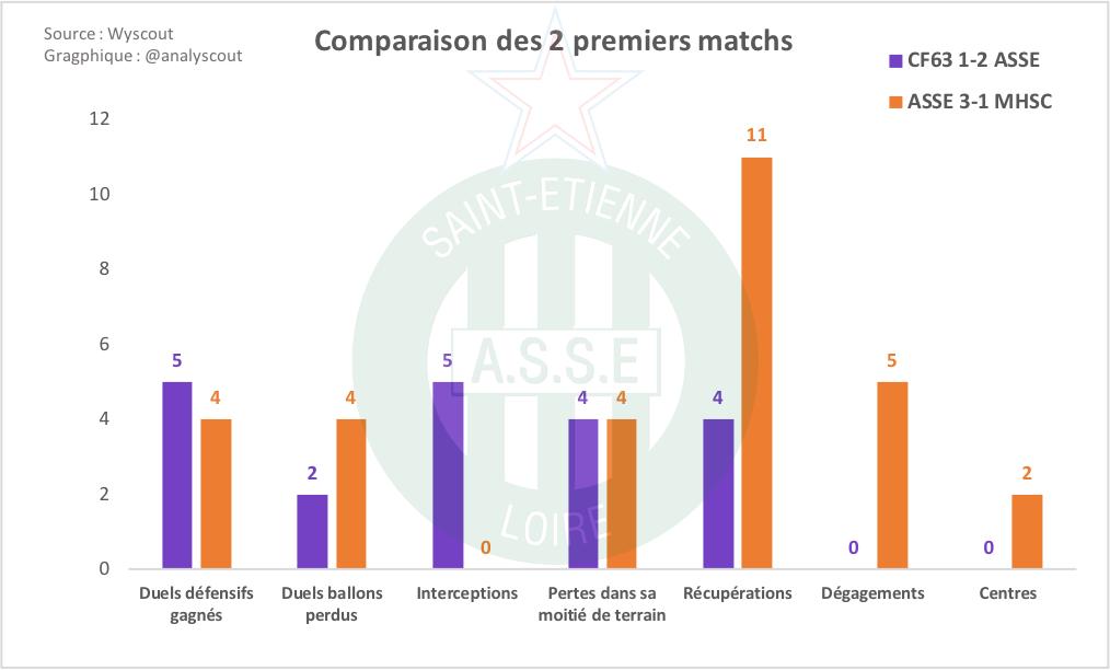 Il dispose de statistiques défensives intéressantes lors de ses deux matchs stéphanois. Il donne des garanties sur les duels défensifs ainsi que sur sa capacité à être efficace sur les interceptions et récupérations.
